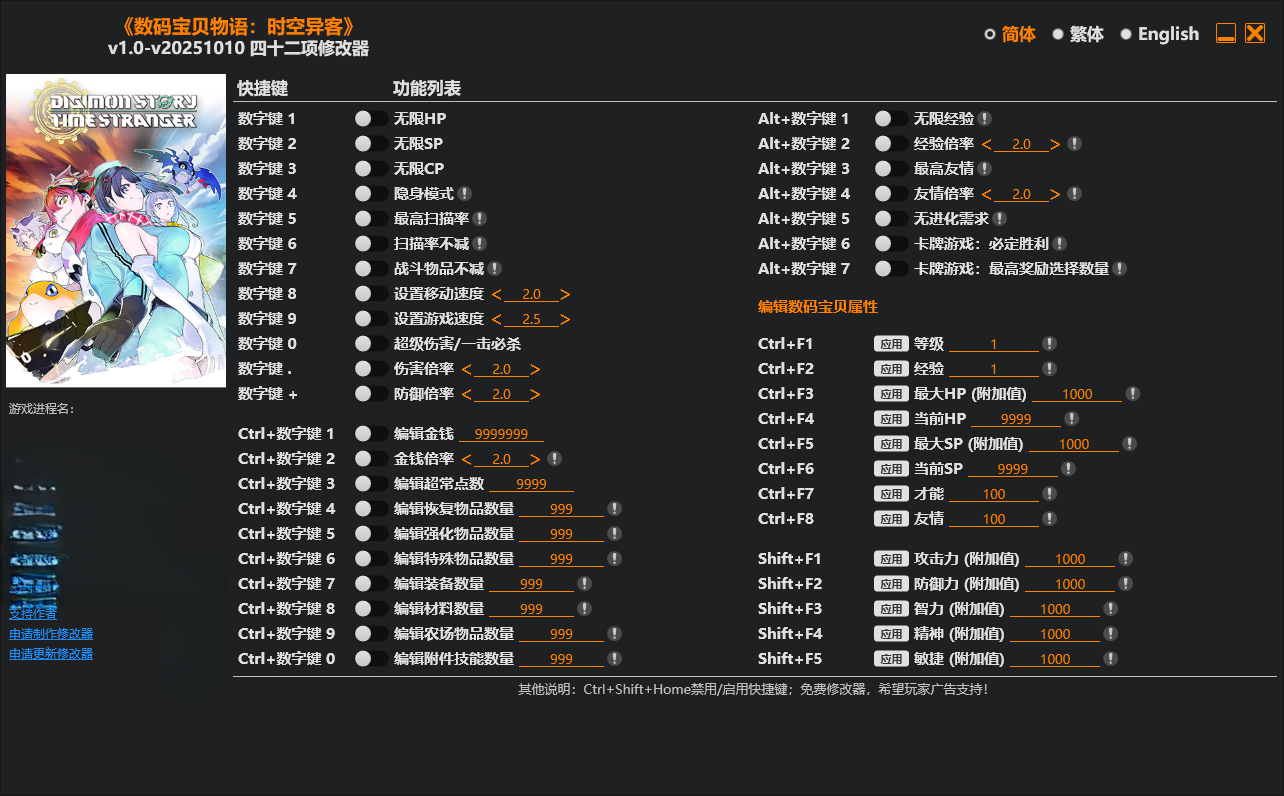修改器截图 版本号 v1.0-v20251010 Plus 42 下载地址 夸克网盘 迅雷网盘 百度网盘 123网盘 #免责声明# 本站提供的资源转载自国内外各大媒体和网络,仅供试玩体验;不得将上述内容用于商业或者非法用途,否则,一切后果请用户自负。您必须在下载后的24个小时之内,从您的电脑中彻底删除上述内容。如果您喜欢该游戏内容,请支持正版,购买注册,得到更好的正版服务。我们非常重视版权问题,如有侵权请邮件与我们联系处理。敬请谅解!